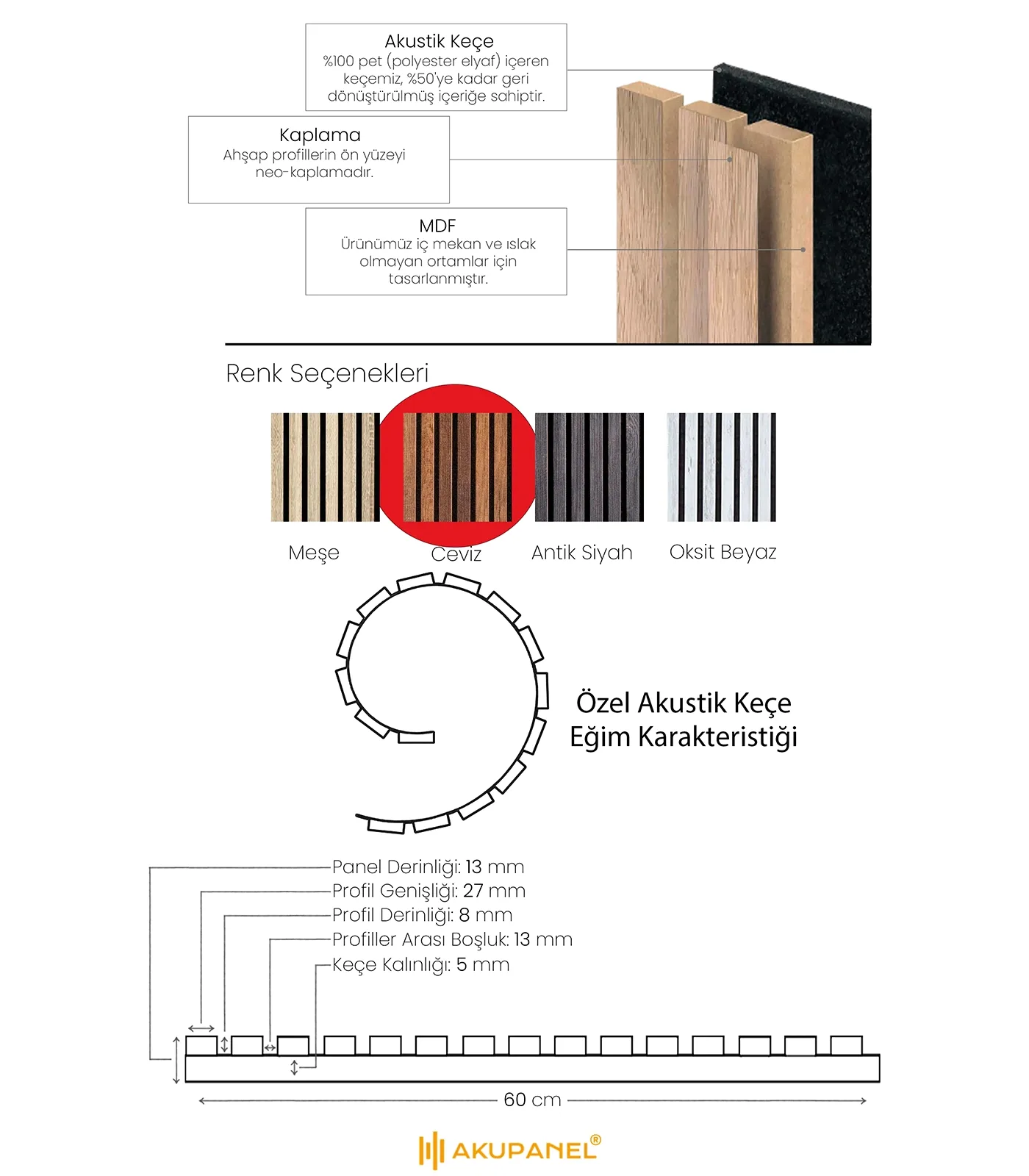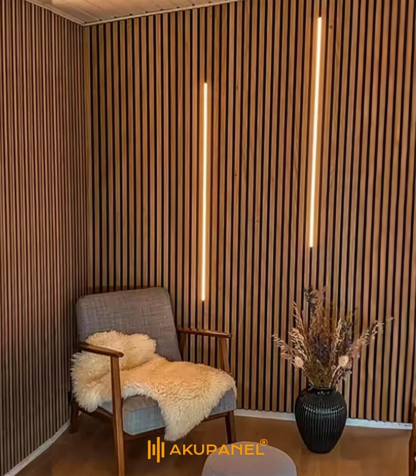 Ceviz Akustik Duvar Paneli , iç mekan dekorasyonunda tercih edilen oldukça şık bir üründür ve Akupanel, odanızdaki gürültü seviyesini düşürmek amacıyla tasarlanmıştır.