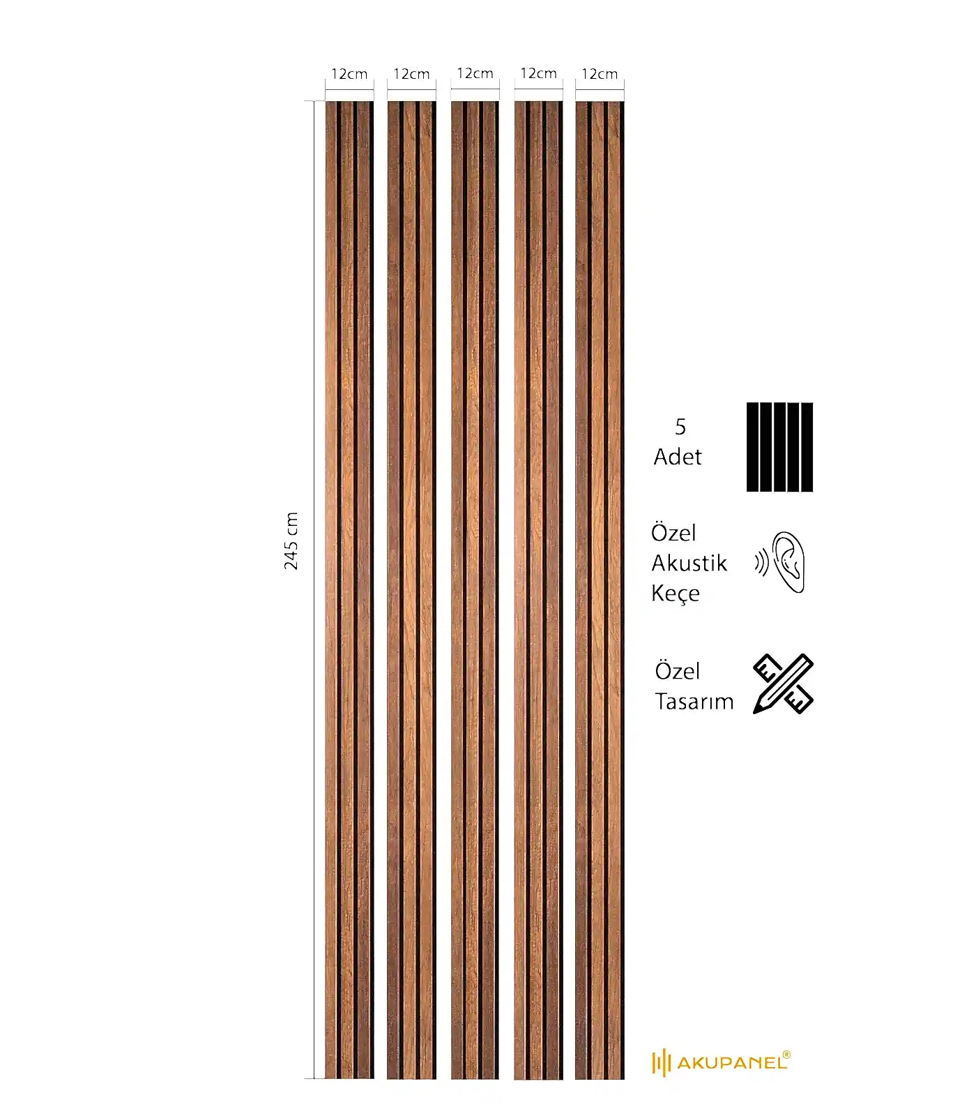 Akupanel MOD 12×245 cm Ceviz Akustik Duvar Paneli (5 Adet)