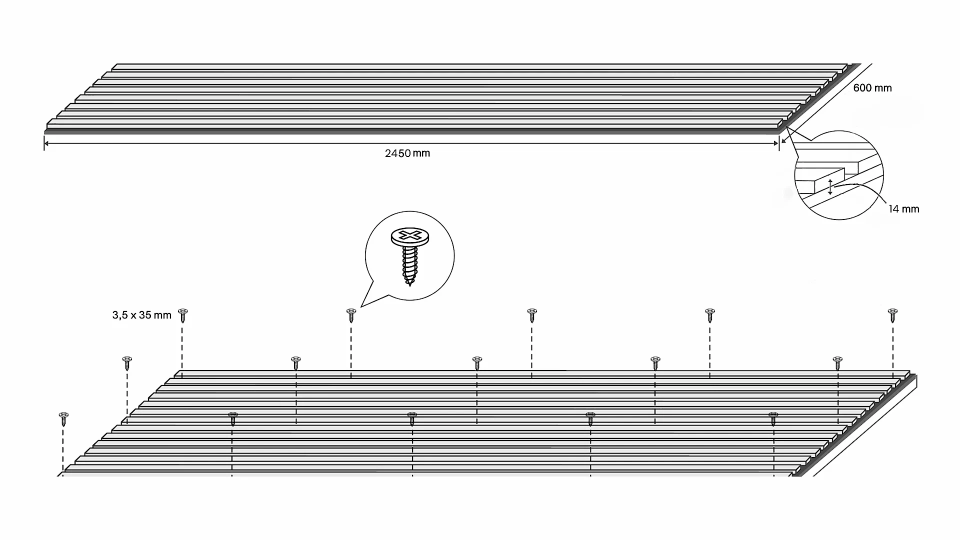 İhtiyacınız olan vida tipi, panellerin monte edileceği duvar tipine bağlıdır. Siyah keçe üzerinde montaj görünmez olacağından siyah vidaları öneririz.