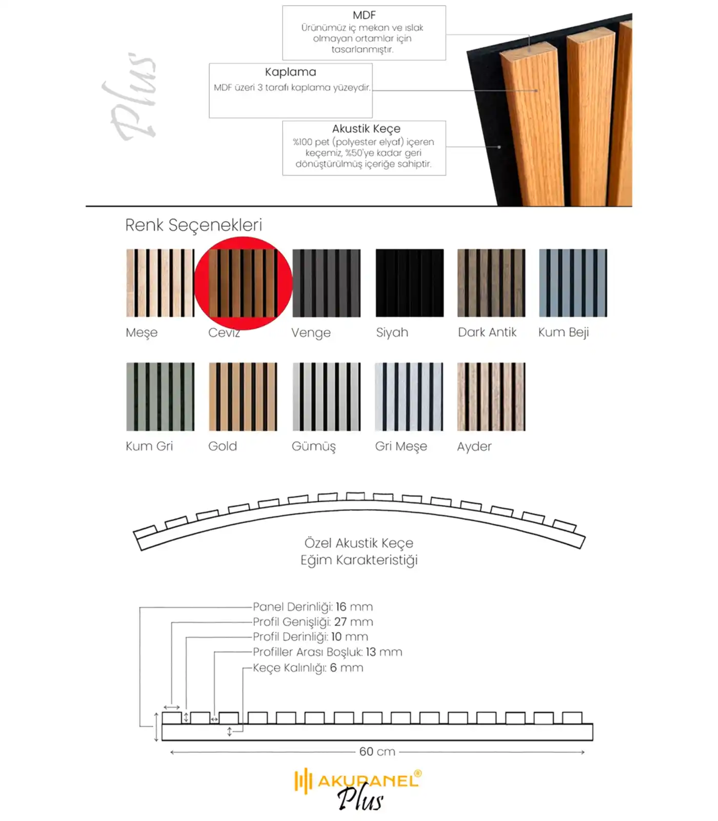 Yeni Akupanel Plus Serisi ile yaşam alanınıza renk katın. MDF üzeri 3 tarafı kaplama yüzeyi ile birlikte plus serisi ile tanışın.
